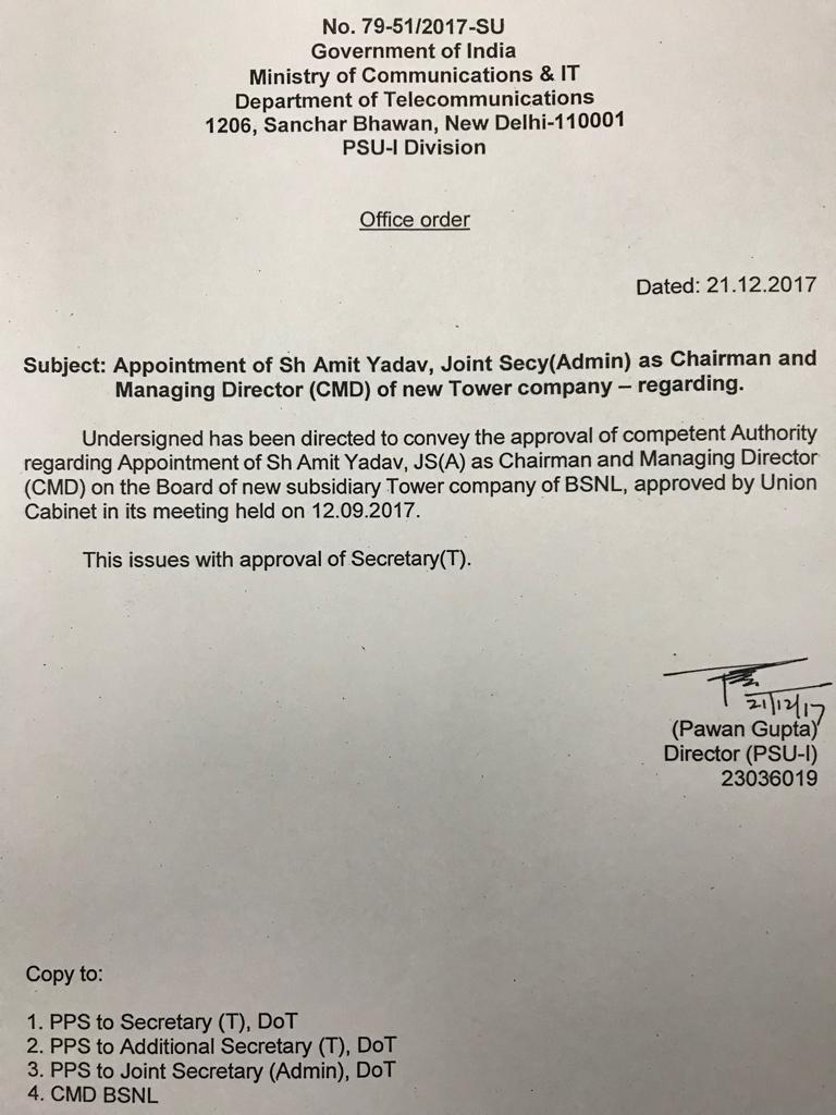 Reportedly, the CMD, BSNL has asked for some inputs for final decision.