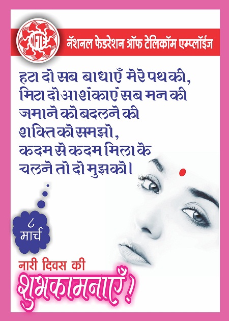 01-03-2017 : Work with Zeal and Vigour :- NFTE HQR appeals to entire BSNL family to work hard with all sincerity to achieve 10% growth in landline, Broad band, mobile etc.